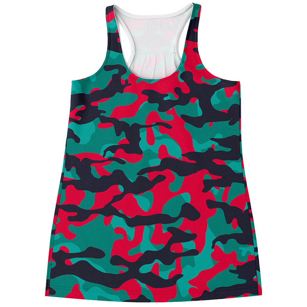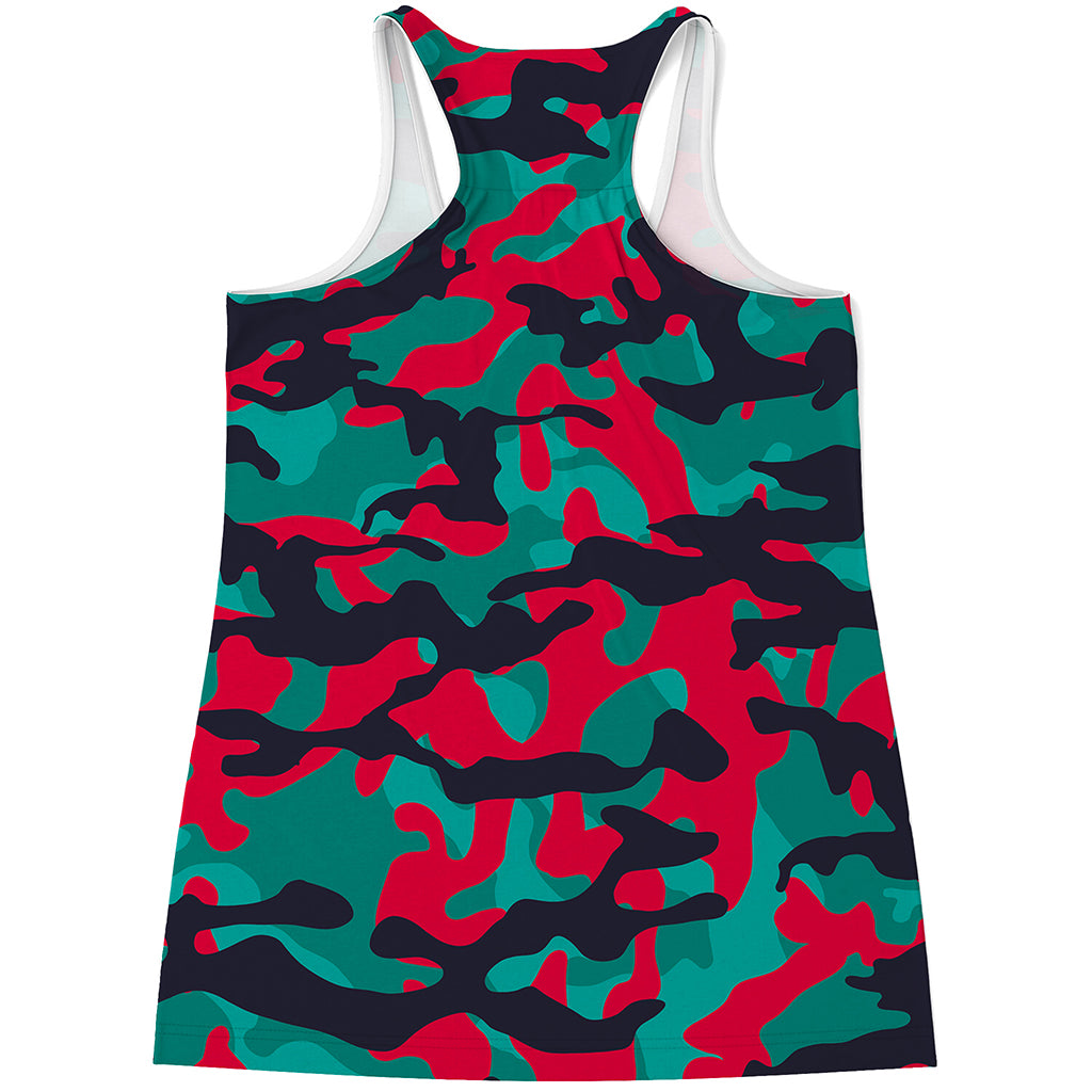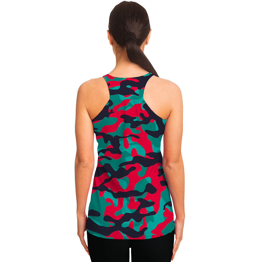 Stay cool and stylish with the versatile Pink Teal And Black Camouflage Print Women's Racerback Tank Top. Designed for women who prioritize comfort and functionality, this racerback tank top is the perfect addition to your active and casual wardrobe. Whether you’re working out, running errands, or relaxing at home, this tank top offers a sleek and flattering fit that keeps you looking great and feeling confident.