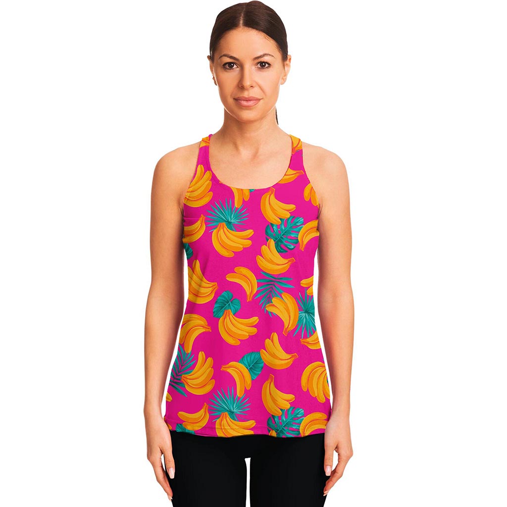 Stay cool and stylish with the versatile Pink Tropical Banana Pattern Print Women's Racerback Tank Top. Designed for women who prioritize comfort and functionality, this racerback tank top is the perfect addition to your active and casual wardrobe. Whether you’re working out, running errands, or relaxing at home, this tank top offers a sleek and flattering fit that keeps you looking great and feeling confident.