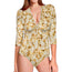 Grunge Ripped Paper American Flag Print Long Sleeve Swimsuit