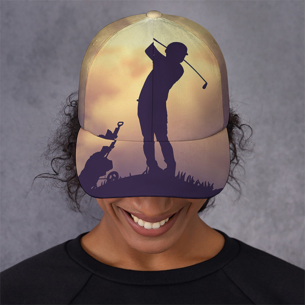 Top off your look with the stylish and functional Pro Golf Swing Print Baseball Cap. Designed for comfort and durability, this baseball cap is the perfect accessory for casual outings, outdoor activities, or simply elevating your everyday style. Its sleek design and practical features make it a wardrobe essential for anyone who values both form and function.