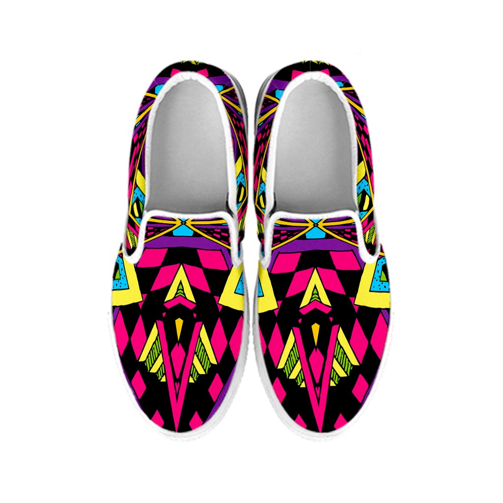 Ethnic Mexican Serape Pattern Print White Slip On Sneakers