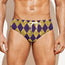 Are you looking for unique men's swim briefs? Check our Purple And Gold Harlequin Pattern Print Men's Swim Briefs on GearFrost. Our swim briefs are handcrafted to the highest quality standards and made-to-order for you!