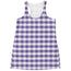 Stay cool and stylish with the versatile Purple And White Gingham Pattern Print Women's Racerback Tank Top. Designed for women who prioritize comfort and functionality, this racerback tank top is the perfect addition to your active and casual wardrobe. Whether you’re working out, running errands, or relaxing at home, this tank top offers a sleek and flattering fit that keeps you looking great and feeling confident.