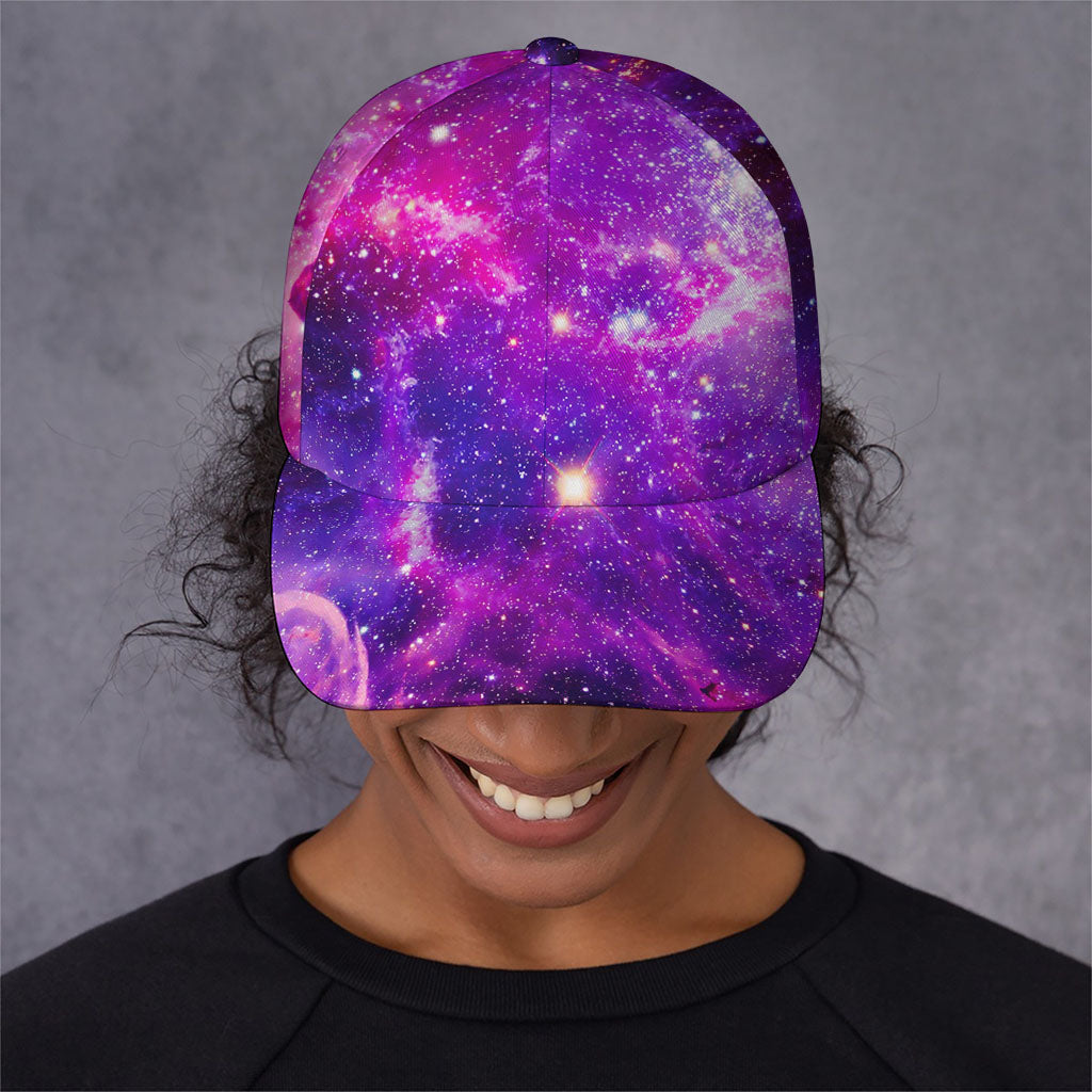 Top off your look with the stylish and functional Purple Bursting Galaxy Space Print Baseball Cap. Designed for comfort and durability, this baseball cap is the perfect accessory for casual outings, outdoor activities, or simply elevating your everyday style. Its sleek design and practical features make it a wardrobe essential for anyone who values both form and function.