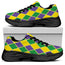 Purple Green And Yellow Mardi Gras Print Black Chunky Shoes
