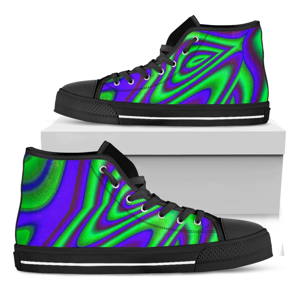 Are you looking for unique sneakers? Check our Purple Green Psychedelic Trippy Print Black High Top Sneakers on GearFrost. Our sneakers are handcrafted to the highest quality standards and made-to-order for you!