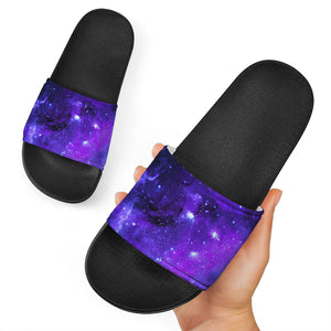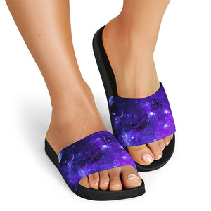 Purple Galaxy Space Blue Starfield Print Black Slide Sandals