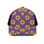 Purple Sunflower Pattern Print Black Mesh Trucker Cap