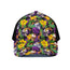 Purple Tropical Skull Pattern Print Black Mesh Trucker Cap