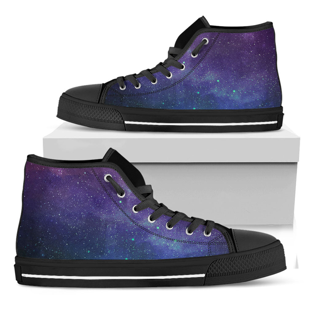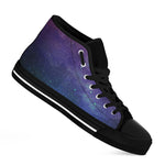 Purple Galaxy Space Blue Starfield Print Black High Top Sneakers