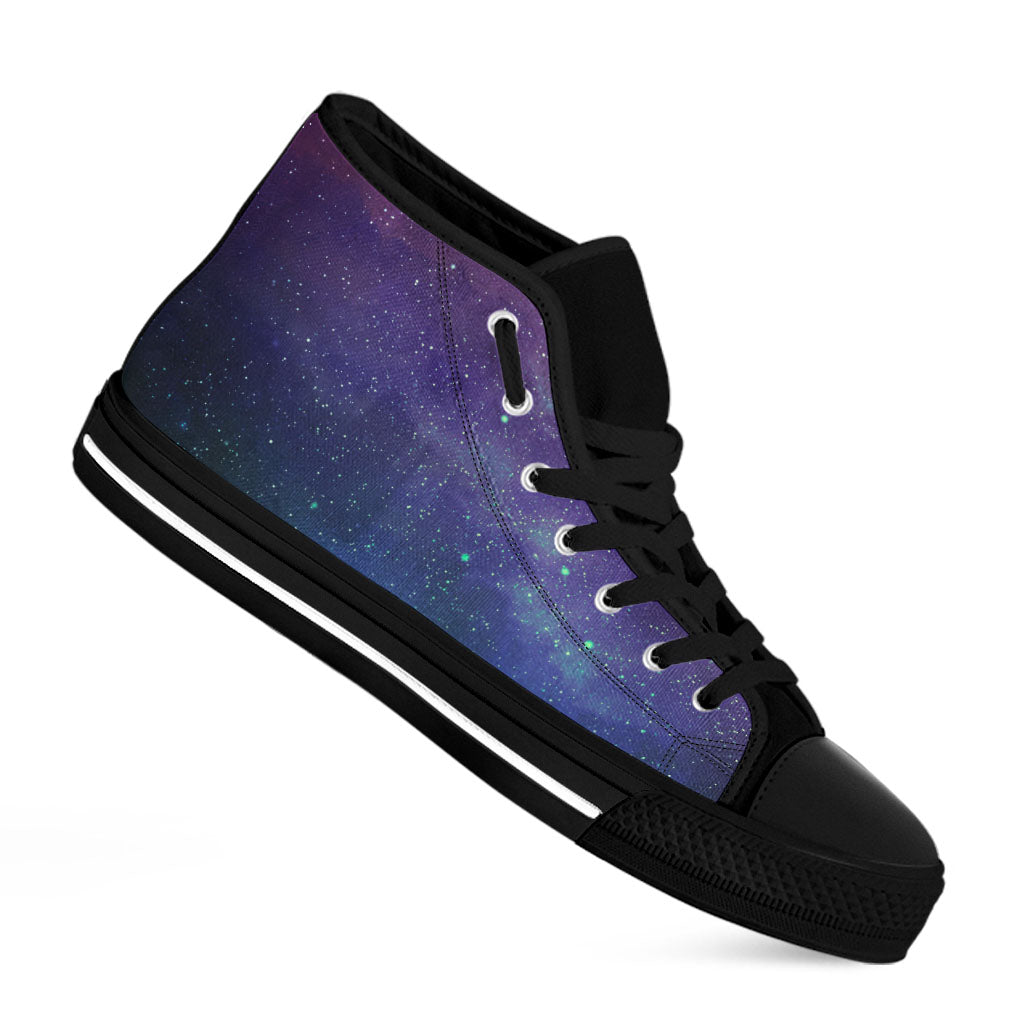 Purple Galaxy Space Blue Stardust Print Black High Top Sneakers
