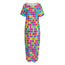Rainbow Squares Pattern Print Short Sleeve Long Nightdress