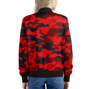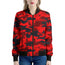 Make a bold statement with the sleek and stylish Red And Black Camouflage Print Women's Bomber Jacket. This women's bomber jacket combines a classic silhouette with modern design, offering the perfect mix of fashion and functionality. Whether you're layering it for a chilly day or adding a finishing touch to your outfit, this jacket is designed to keep you comfortable while elevating your style.