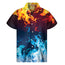 Red And Blue Fire Print Men's Short Sleeve Shirt