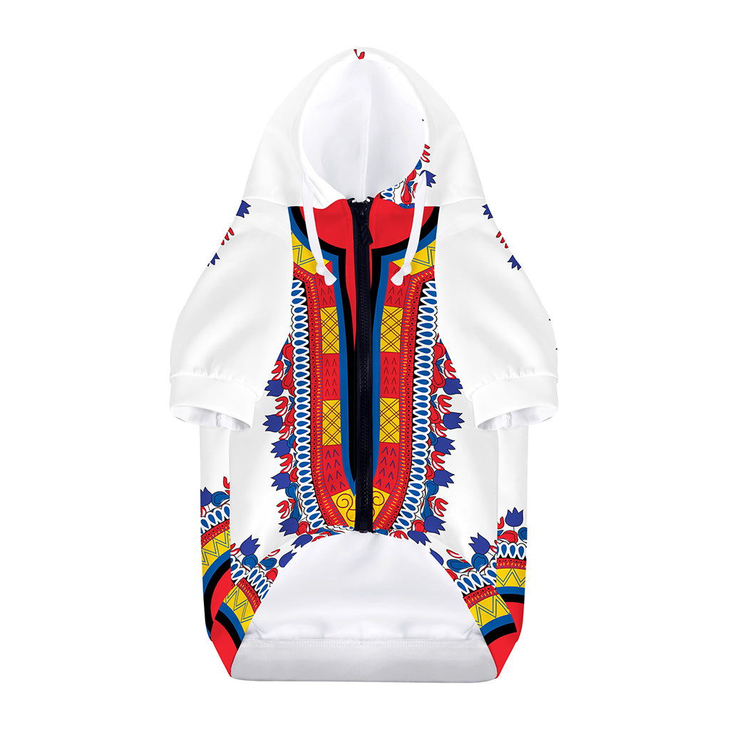 The Red And White African Dashiki Print Dog Zip Up Hoodie is more than just pet clothing—it’s a way to express your style while offering practical benefits. From lounging at home to neighborhood strolls, this hoodie provides an easy wardrobe addition for pets that don't mind dressing up.