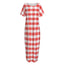 Red And White Gingham Pattern Print Short Sleeve Long Nightdress