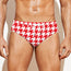 Are you looking for unique men's swim briefs? Check our Red And White Houndstooth Pattern Print Men's Swim Briefs on GearFrost. Our swim briefs are handcrafted to the highest quality standards and made-to-order for you!