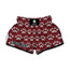 Red And White Paw Knitted Pattern Print Muay Thai Boxing Shorts