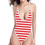 Red And White Striped Pattern Print One Piece High Cut Swimsuit