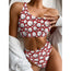 Red Baseball Pattern Print One Shoulder Bikini Set