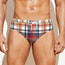 Are you looking for unique men's swim briefs? Check our Red Blue And Beige Madras Plaid Print Men's Swim Briefs on GearFrost. Our swim briefs are handcrafted to the highest quality standards and made-to-order for you!