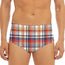 Stay confident at the pool or beach with the Red Blue And Beige Madras Plaid Print Men's Triangle Swim Briefs. Designed with a blend of 88% polyester and 12% spandex, these swim briefs provide comfort, stretch, and support for everyday swimwear use. The smooth fabric and regular fit make them practical for both swimming and lounging.