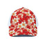 Red Hibiscus Plumeria Pattern Print White Mesh Trucker Cap