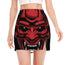 Red Japanese Demon Mask Print Side Slit Mini Skirt