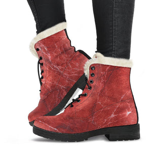Combine cozy warmth with standout style in the versatile Red Marble Print Faux Fur Leather Boots. Designed to keep you comfortable without compromising on fashion, these faux fur leather boots are a must-have addition to your footwear collection. Whether you’re braving chilly weather or adding an edgy touch to your outfit, these boots offer the perfect mix of practicality and personality.