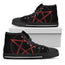 Are you looking for unique sneakers? Check our Red Pentagram Symbol Print Black High Top Sneakers on GearFrost. Our sneakers are handcrafted to the highest quality standards and made-to-order for you!