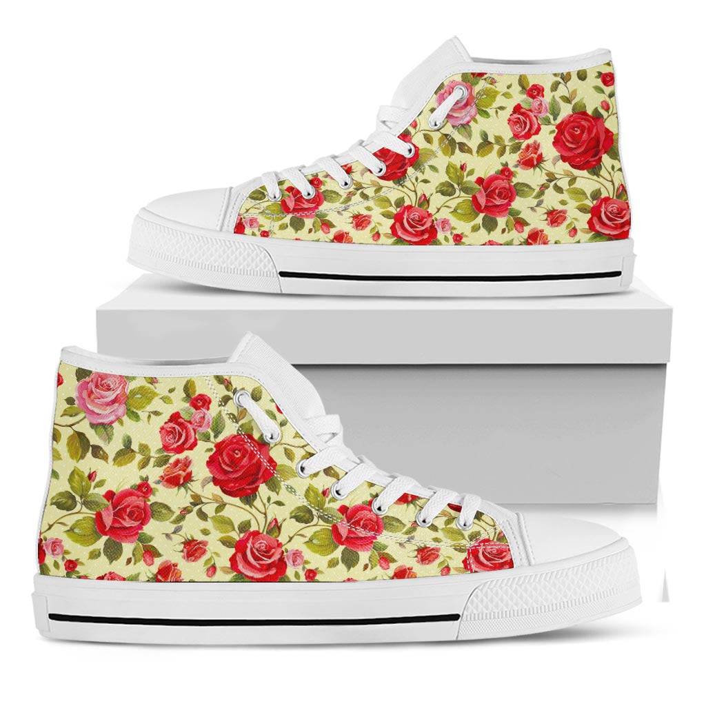 Are you looking for unique sneakers? Check our Red Pink Rose Floral Pattern Print White High Top Sneakers on GearFrost. Our sneakers are handcrafted to the highest quality standards and made-to-order for you!