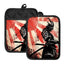 The Red Rising Sun Samurai Print Pot Holders With Pocket is a simple yet practical addition to any kitchen, designed to keep your hands safe and your cooking experience easier. Made from durable polyester, these pot holders feature a convenient pocket design that provides added protection and comfort when handling hot dishes, lids, or pans.