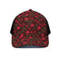 Red Rose Floral Flower Pattern Print Black Mesh Trucker Cap