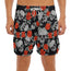 Red Rose Grey Skull Pattern Print Men's Split Running Shorts