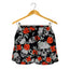 Red Rose Grey Skull Pattern Print Women's Shorts