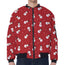 Red Snowman Pattern Print Zip Sleeve Bomber Jacket