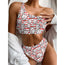 Red Striped Baseball Pattern Print One Shoulder Bikini Set