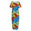 Red Yellow And Blue Camouflage Print Short Sleeve Long Nightdress