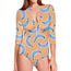 Retro Blue Banana Pattern Print Long Sleeve Swimsuit