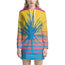 Retrowave Sunset Palm Tree Print Pullover Hoodie Dress