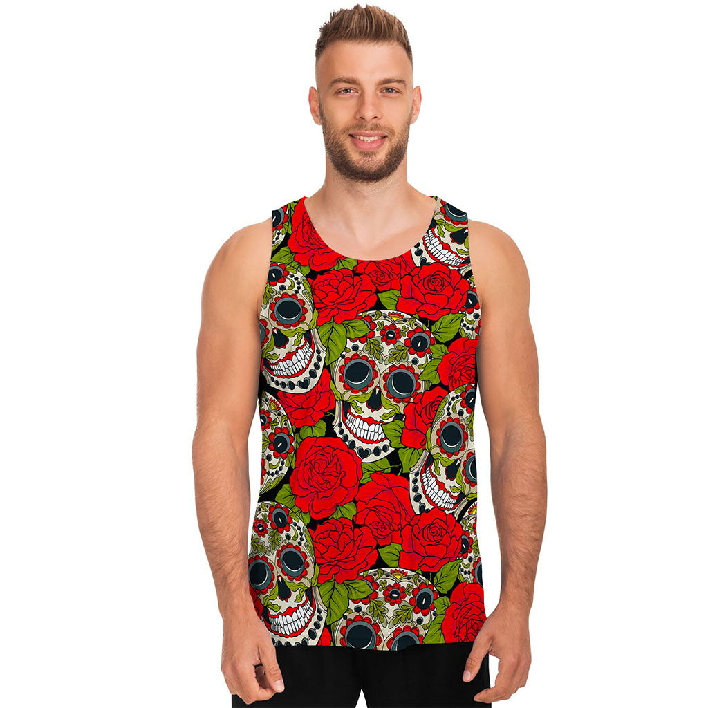Are you looking for unique tank tops? Check our Rose Floral Sugar Skull Pattern Print Men's Tank Top on GearFrost. Our tank tops are handcrafted to the highest quality standards and made-to-order for you!