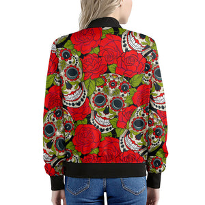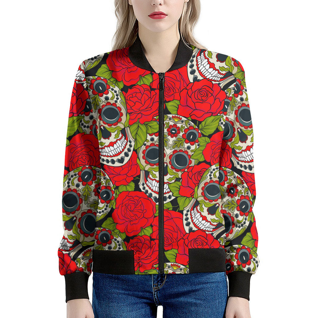 Make a bold statement with the sleek and stylish Rose Floral Sugar Skull Pattern Print Women's Bomber Jacket. This women's bomber jacket combines a classic silhouette with modern design, offering the perfect mix of fashion and functionality. Whether you're layering it for a chilly day or adding a finishing touch to your outfit, this jacket is designed to keep you comfortable while elevating your style.