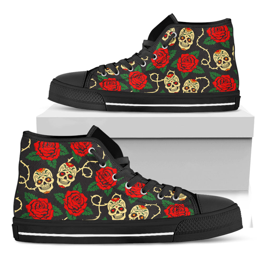 Are you looking for unique sneakers? Check our Rose Flower Sugar Skull Pattern Print Black High Top Sneakers on GearFrost. Our sneakers are handcrafted to the highest quality standards and made-to-order for you!