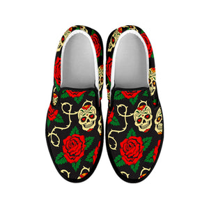 Are you looking for unique sneakers? Check our Rose Flower Sugar Skull Pattern Print Black Slip On Sneakers on GearFrost. Our sneakers are handcrafted to the highest quality standards and made-to-order for you!