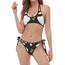 Monochrome Punk Skull Print Halter Scoop Tie Side Bikini