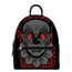 White Red Sugar Skull Pattern Print Leather Backpack