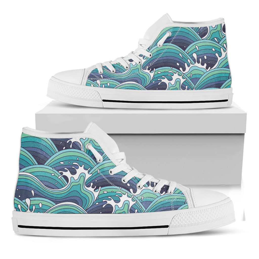 Are you looking for unique sneakers? Check our Sea Wave Surfing Pattern Print White High Top Sneakers on GearFrost. Our sneakers are handcrafted to the highest quality standards and made-to-order for you!
