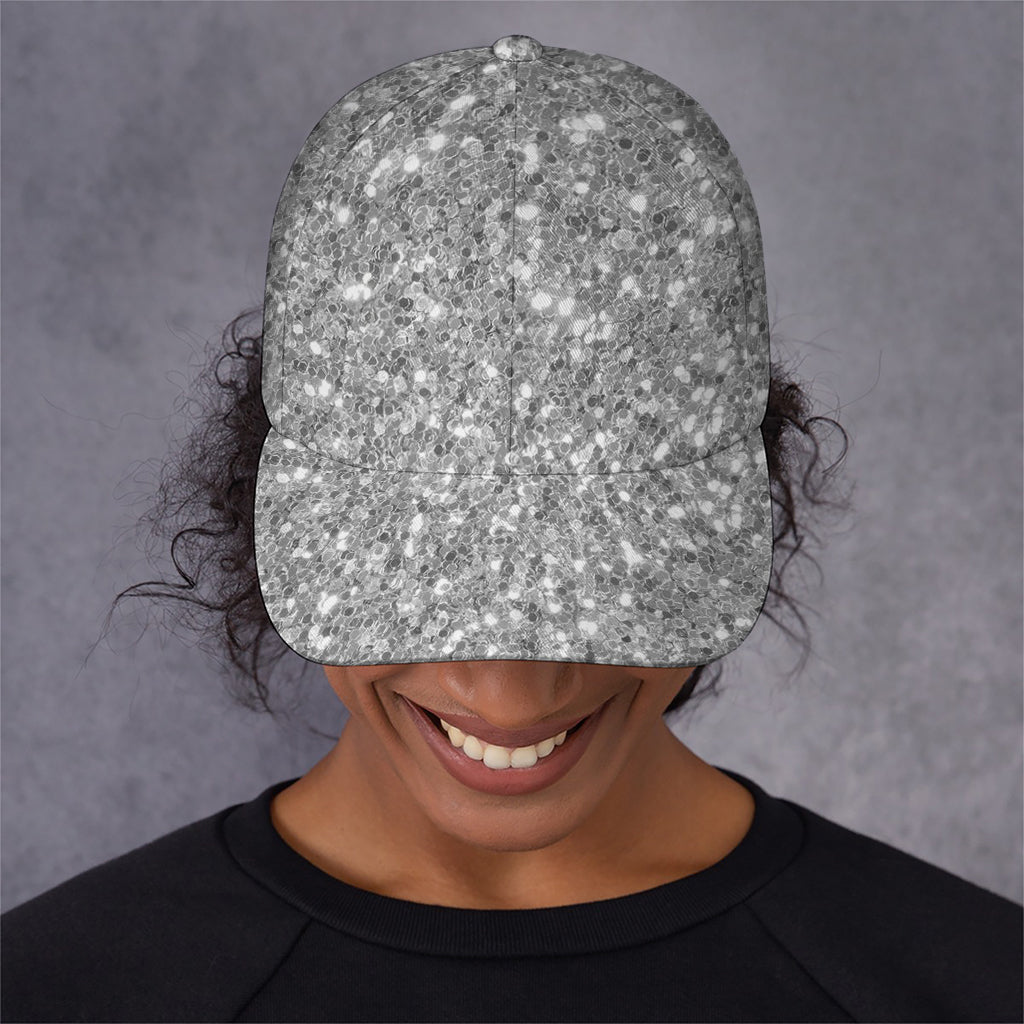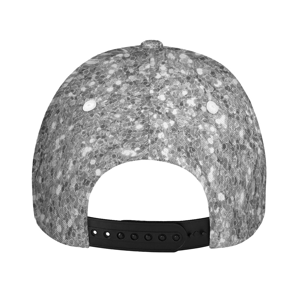 Top off your look with the stylish and functional Silver (NOT Real) Glitter Print Baseball Cap. Designed for comfort and durability, this baseball cap is the perfect accessory for casual outings, outdoor activities, or simply elevating your everyday style. Its sleek design and practical features make it a wardrobe essential for anyone who values both form and function.