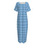 Solf Blue Tattersall Pattern Print Short Sleeve Long Nightdress