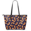 Black Sunflower Pattern Print Leather Tote Bag With Zipper